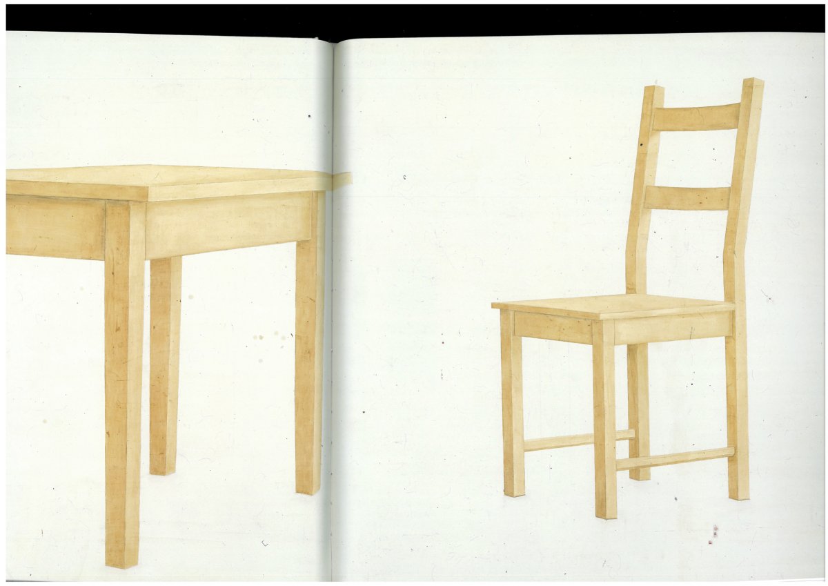 Isolating objects from their backgrounds, such as ceramic tiled floors, a chain link fence, a fireplace, or a doorway, Khedoori calls attention to the everyday world and our movements within it.